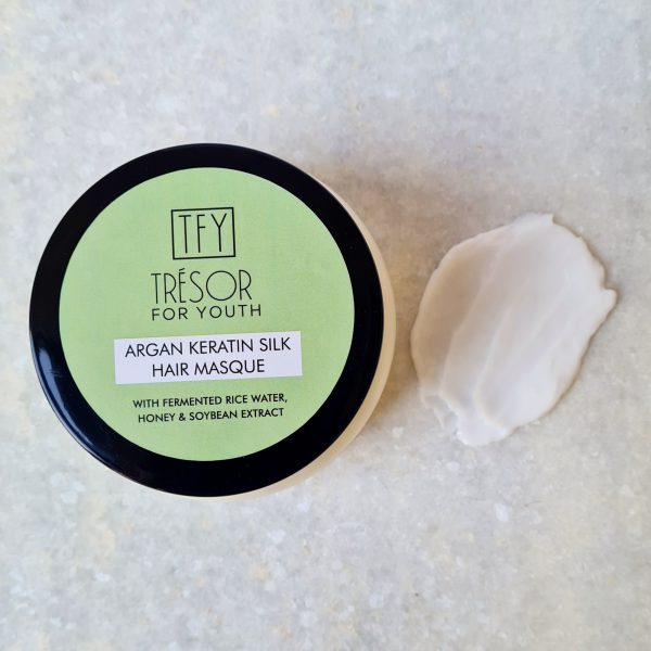 Key Ingredients: Argan Oil, Keratin, Rice Ferment, Honey Extract, Soybean Extract, Green Tea Extract, Aloevera Extract